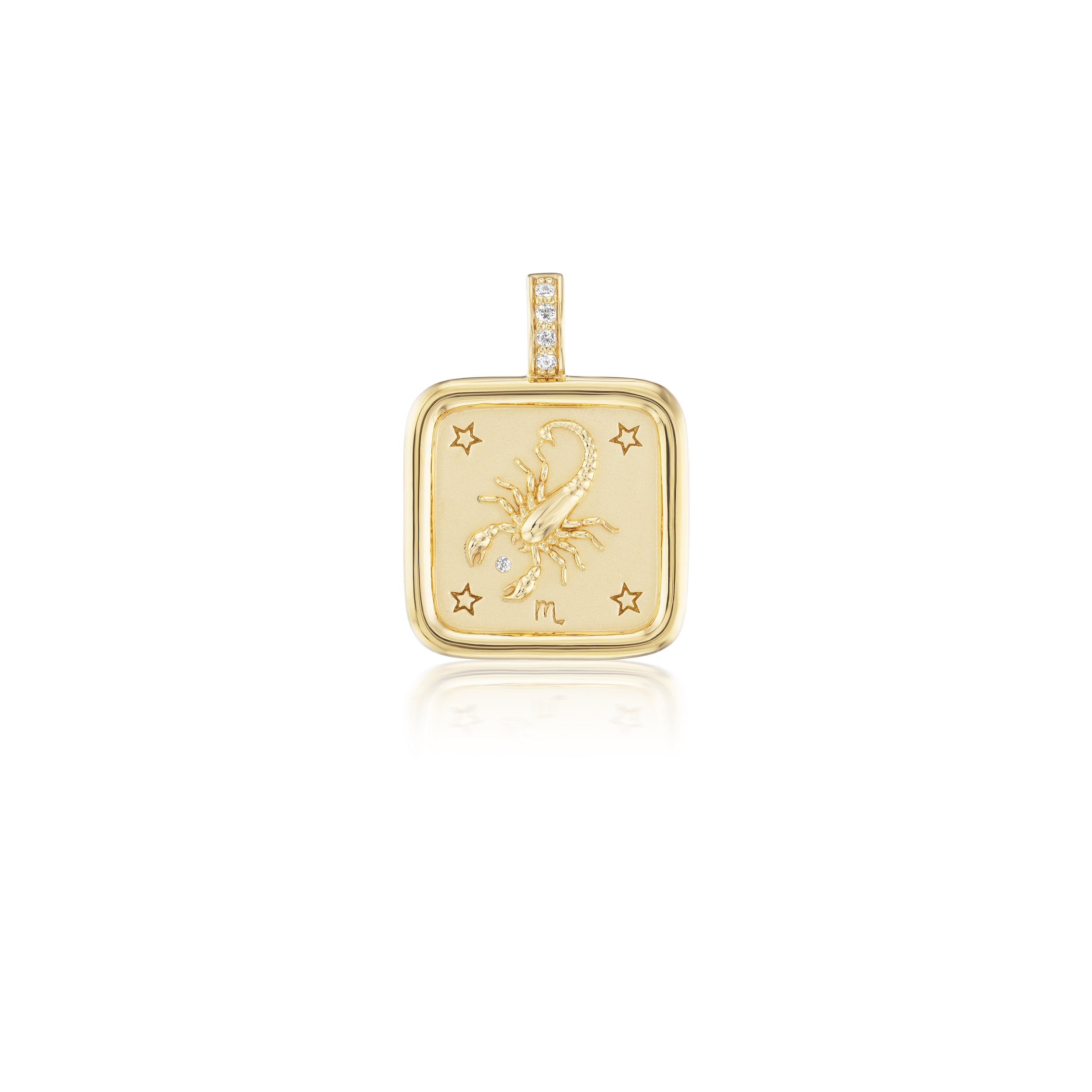 Handcrafted 18k yellow gold zodiac pendant with 0.03 cttw diamonds.