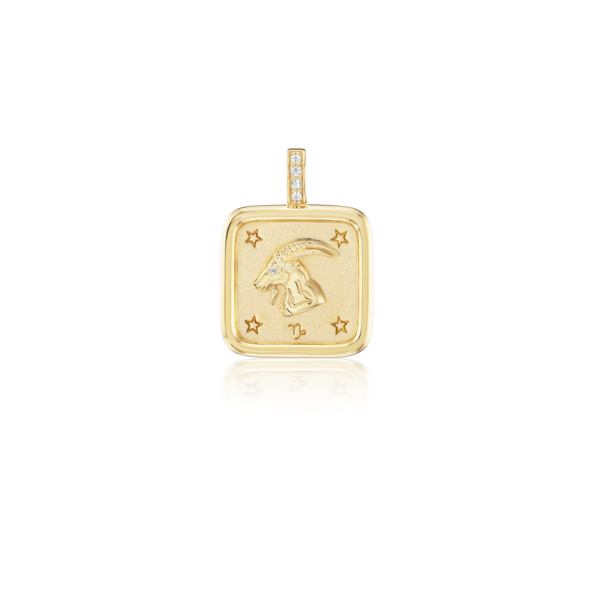 Handcrafted 18k yellow gold zodiac pendant with 0.03 cttw diamonds.