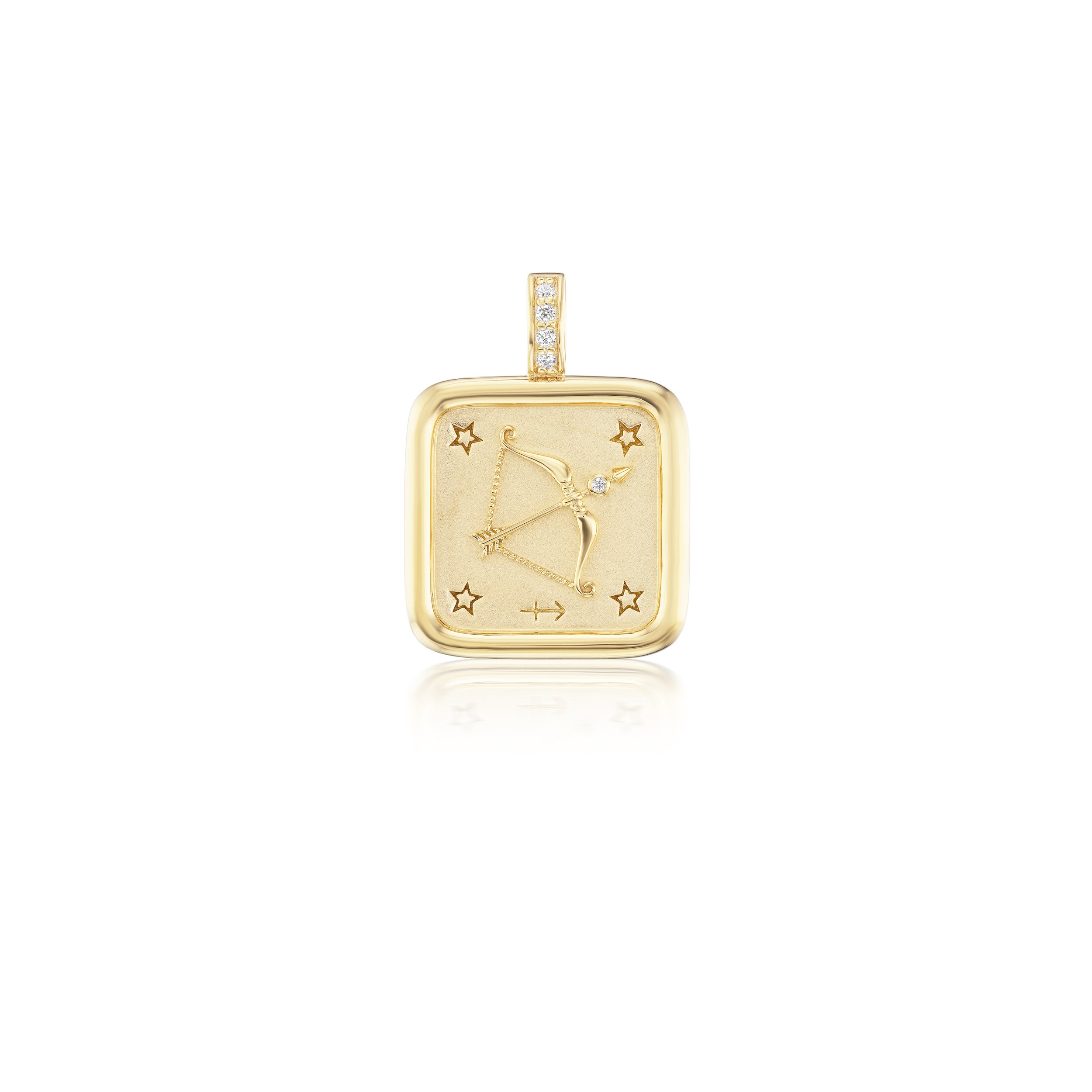 Handcrafted 18k yellow gold zodiac pendant with 0.03 cttw diamonds.