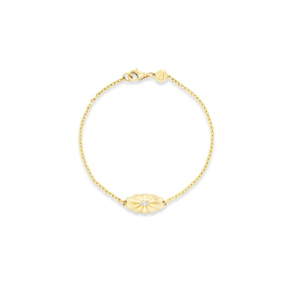 Handcrafted 18k yellow gold bracelet with 0.10 cttw G-H/SI diamonds. 15 mm x 8 mm.