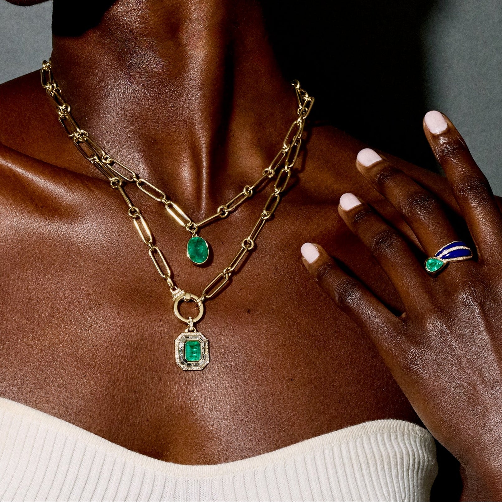 Our Nomad collection is an ever-changing capsule of one-of-a-kind jewels. Each piece starts off with a hand sourced stone that caught the eyes of Nicole, that is then designed in a signature Sorellina setting to celebrate that particular stone's beauty, whether that be by itself or elevated by other specialty cut stones.